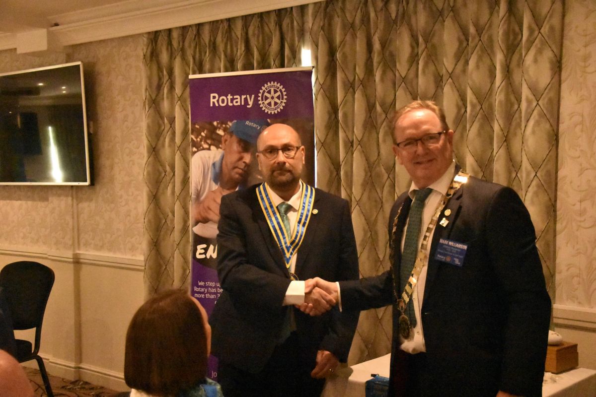 At an extremely enjoyable event recently, Rotarians from all over the District came together to thank the outgoing President Anne Moriaty for all her hard work during the past year, and to welcome Mark at the start of his year in office.