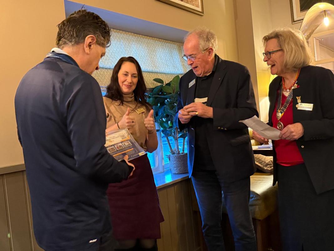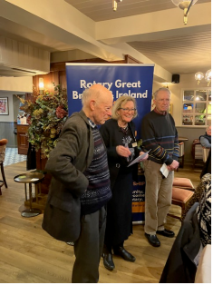 Guests included the President of the Inner Wheel, spouses of Members, the family of the outgoing President, John Reid, and a representative of The Prostate Project who received a cheque for the charity, raised by some of the Club Members undertaking a sponsored walk.