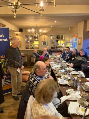 Guildford Chantries Rotary Club hosted a Burns Night at the Wilfrid Noyce Centre in Godalming and nine of our Club Members attended, together with their spouses. The food was delicious, the Piper excellent, the address to the haggis was incomprehensible for most of us ! and the poetry of Robert Burns similarly so ! However, we thoroughly enoyed ourselves, all wearing our at least token nod towards the tartan, and some happy ceilidh dancing to the music of an excellent band completed the evening.
