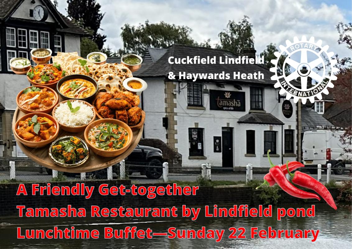Cuckfield Lindfield & Haywards Heath Rotary Club meets most Tuesdays at 7pm for 7.30pm for supper, friendship, social interaction, business and hearing an interesting speaker.