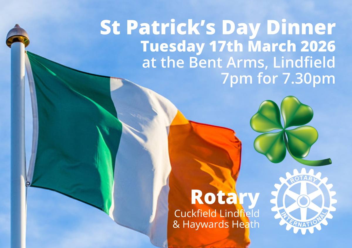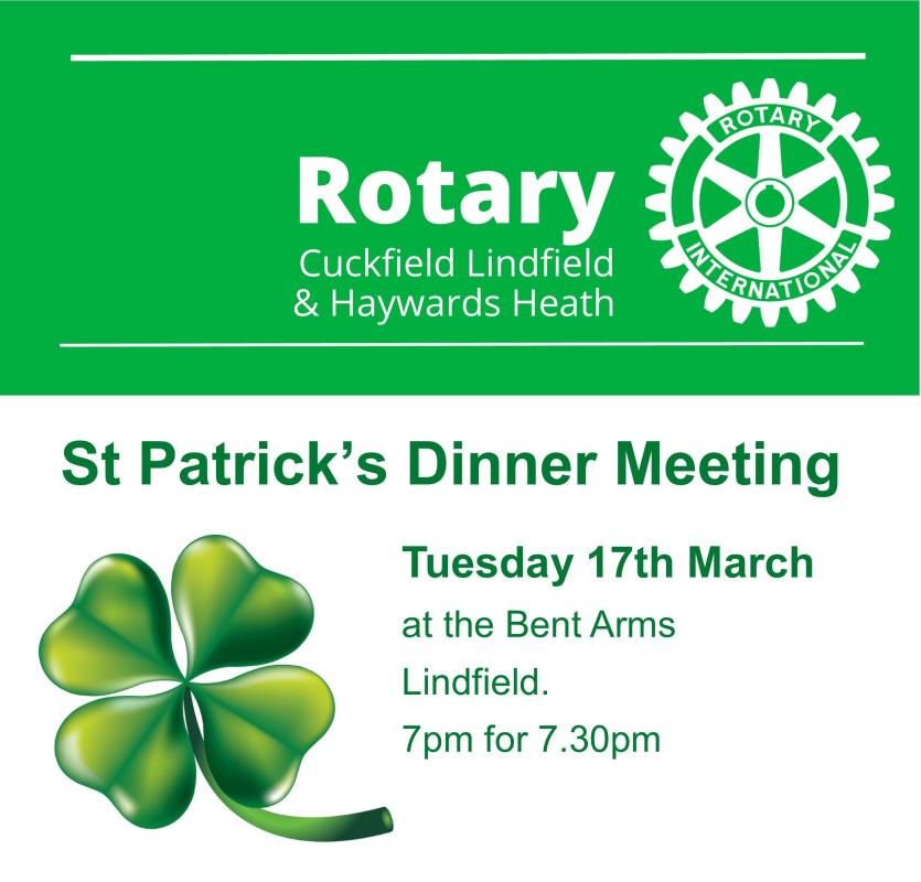 Cuckfield Lindfield & Haywards Heath Rotary Club meets most Tuesdays at 7pm for 7.30pm for supper, friendship, social interaction, business and hearing an interesting speaker.