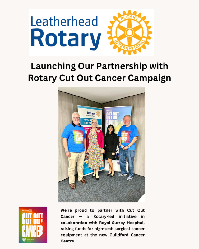 Rotary Cut Out Cancer Campaign is close to home — a campaign raising money for advanced surgical equipment at Royal Surrey’s new cancer centre. This facility will change lives across Surrey, Sussex, and beyond — offering more precise and less invasive surgeries, reducing patients waiting and recovering times, and providing improved patients outcomes.