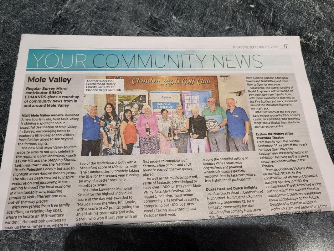 moreDiscover the latest news, stories, and highlights featuring Leatherhead Rotary in the local and national press.