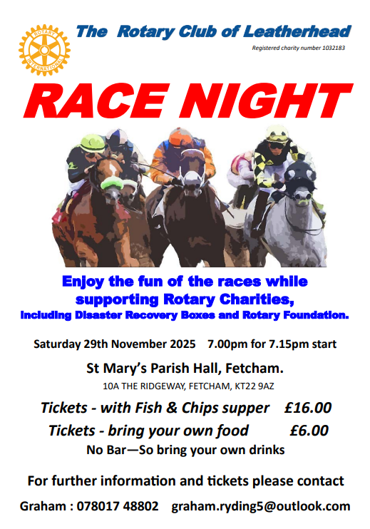 Leatherhead Rotary raises around £20,000 each year for a wide range of local, national and international charities.