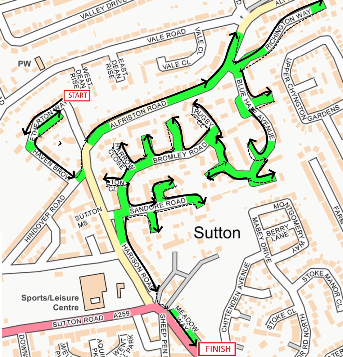 Etherton Way, Alfriston Road, Richington Way, Blue Haze Avenue, Bromley Road, Sandore Road , Harison Road , Meadow Way.