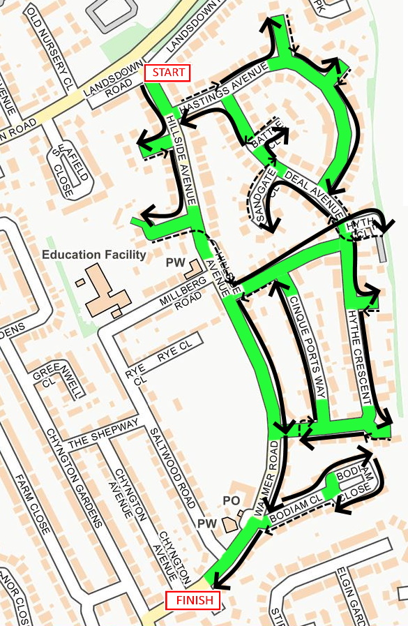 Hillside Avenue, Hythe Crescent, Deal Avenue, Hastings Avenue, Cinque Ports Way, Walmer Road.
