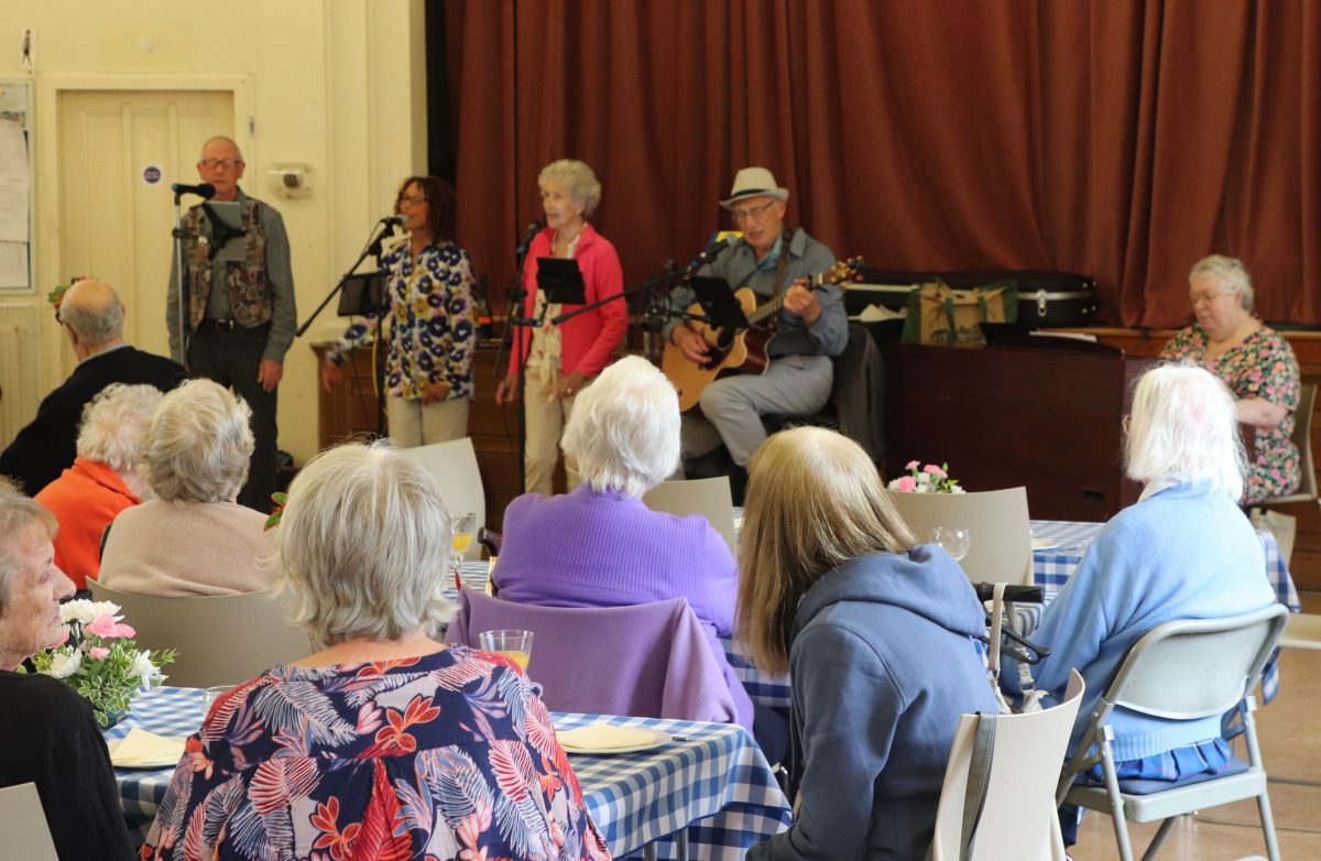 Hi-Tyme entertained the guests with a mix of well-known and modern classical pop tunes before tea was served including homemade sandwiches, cakes, and scones. As the guests were leaving, one was heard to say “I would pay money to listen to them, they were good.”
