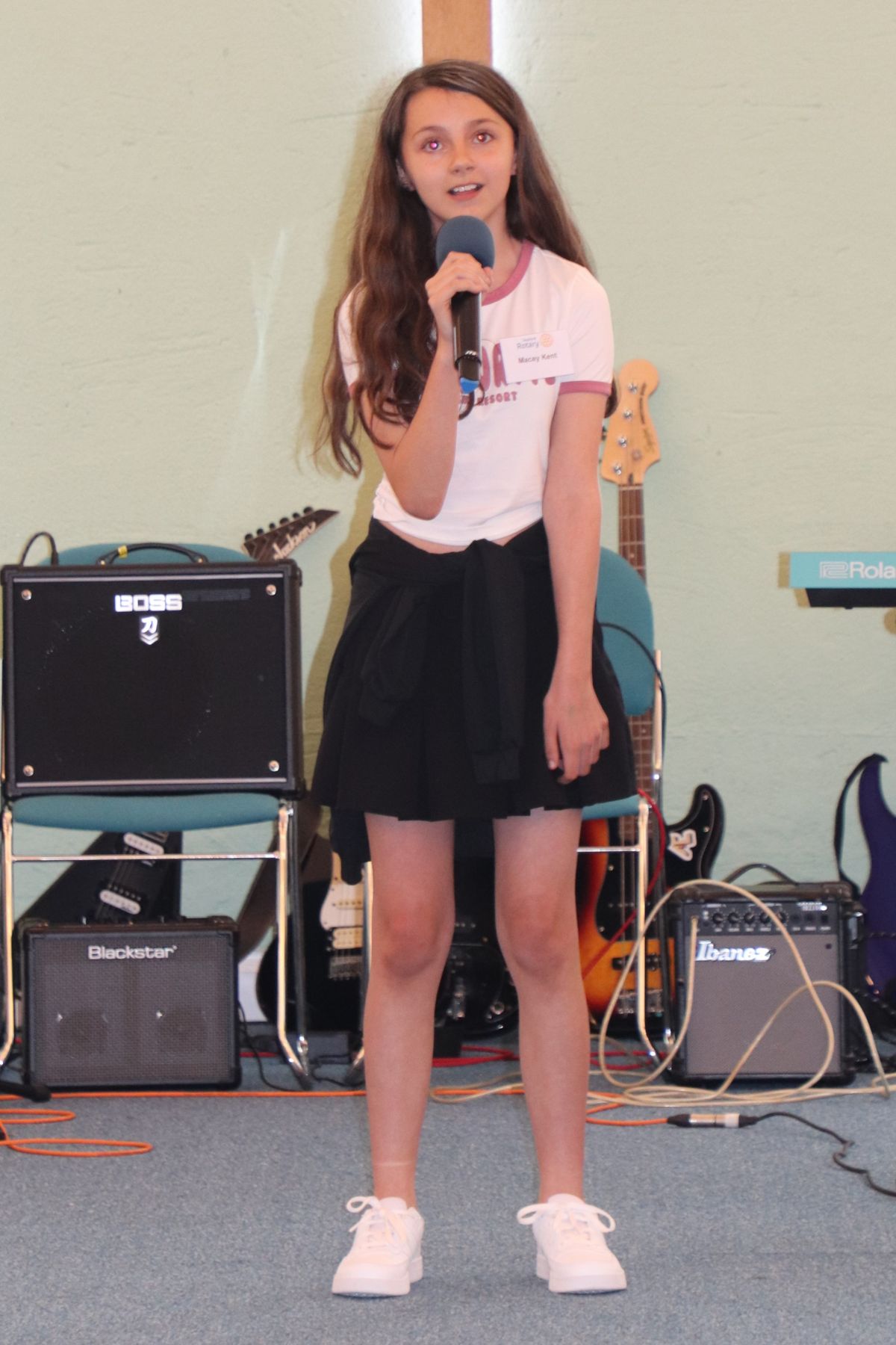 Although the competition was for children between 11 and 17, this year there were also performances from two youngsters under the age limit from 6 to 10 years old. The older of the two, Sarina Stirrup, gave a vocal performance of ‘A Part of Your World’ from Little Mermaid that led head Judge Pat White to say “Those older boys and girls better watch out next year, she is good.” In recognition of her vocal display, she was awarded an Encouragement Prize.