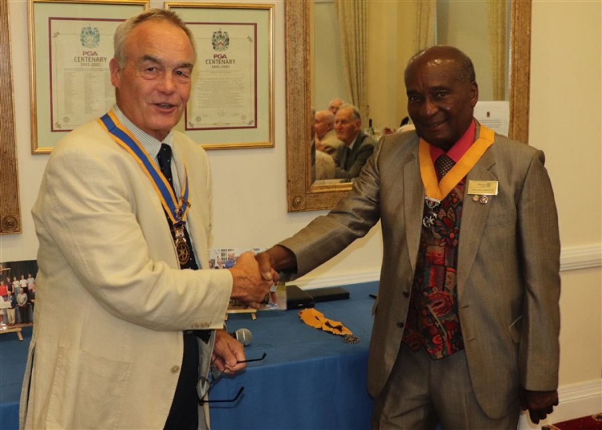 President Clive Livingstone spoke about his term of office, after which he took the Presidential jewel of office and placed it upon the shoulders of President Elect Mike Barker. Mike then as President, took the Vice President’s jewel of office and placed it upon his shoulders of Collins Griffith. He noted however that a nomination for Second Vice President is outstanding, and this jewel remains to be presented.
