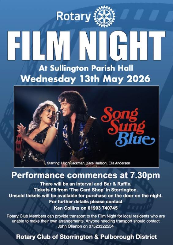 Rotary Club Members can provide transport to the Film Night for local residents who are unable to make their own arrangements.