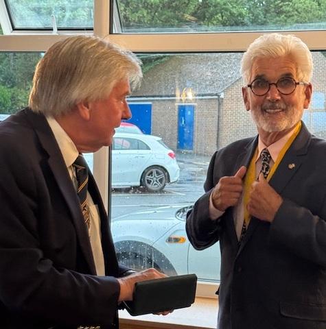 The Rotary Club of Thanet members voted unanimously to elect Sam Matsubara as their president for the next 2026-2027 Rotary year. The picture shows Ray Johnson the current president congratulating Sam on his appointment.