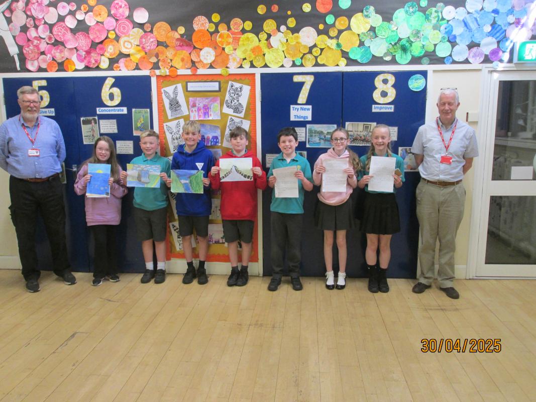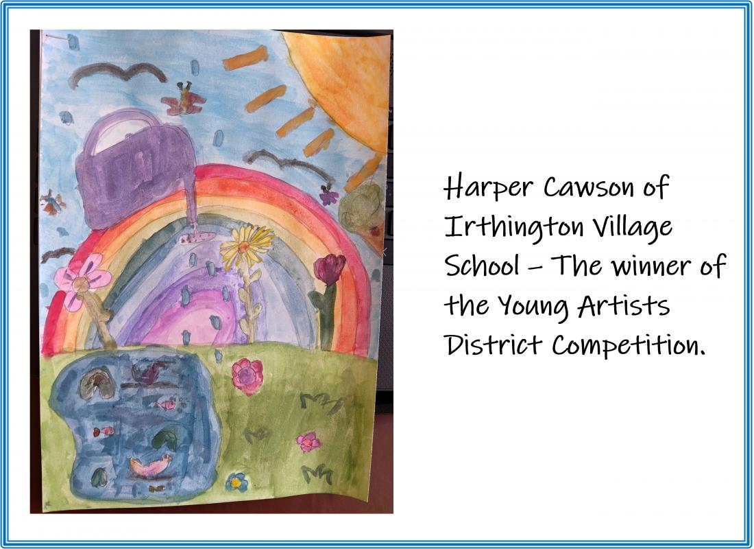 The photo is from the prize giving at Warwick Bridge Primary School, and of Harper’s Young Artist entry.