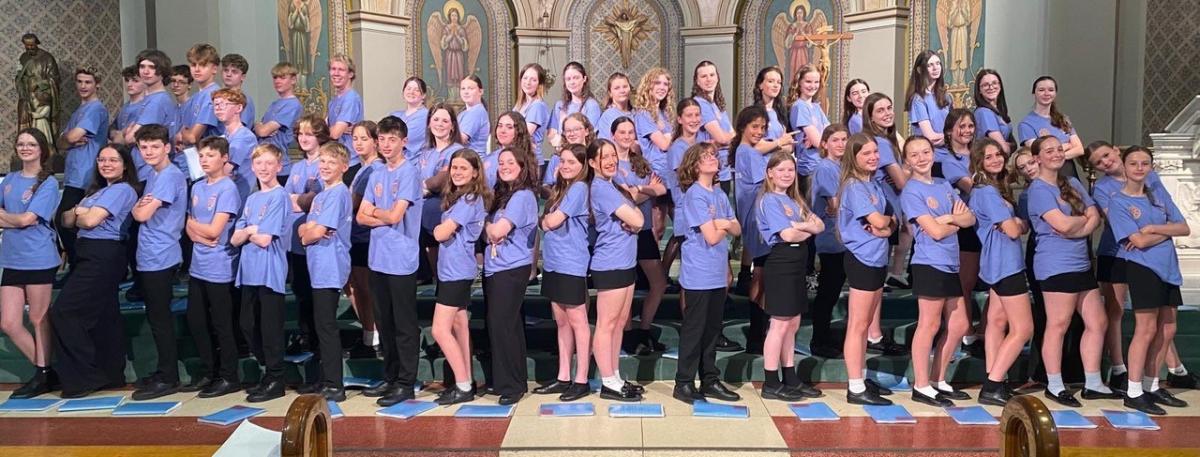 This shows a large group of music students from the Priory School, Hitchin, who went on a short performing tour to Toronto in Canada in June of this year. Hitchin Priory Rotary Club made a donation to support the trip, and is proud that the children wore the Rotary logo on their shirts.