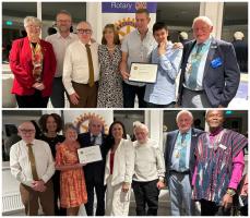 more At our special meeting on 12th November we recognised two local people as "Paul Harris Fellows" for their work in supporting the local community.