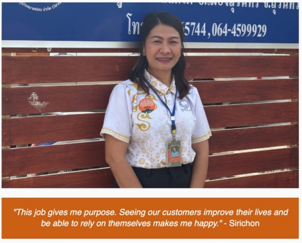 Field Officers like Sirichon are at the heart of it all. They’re the ones meeting entrepreneurs face-to-face, delivering training, answering questions, and supporting their loan journeys.