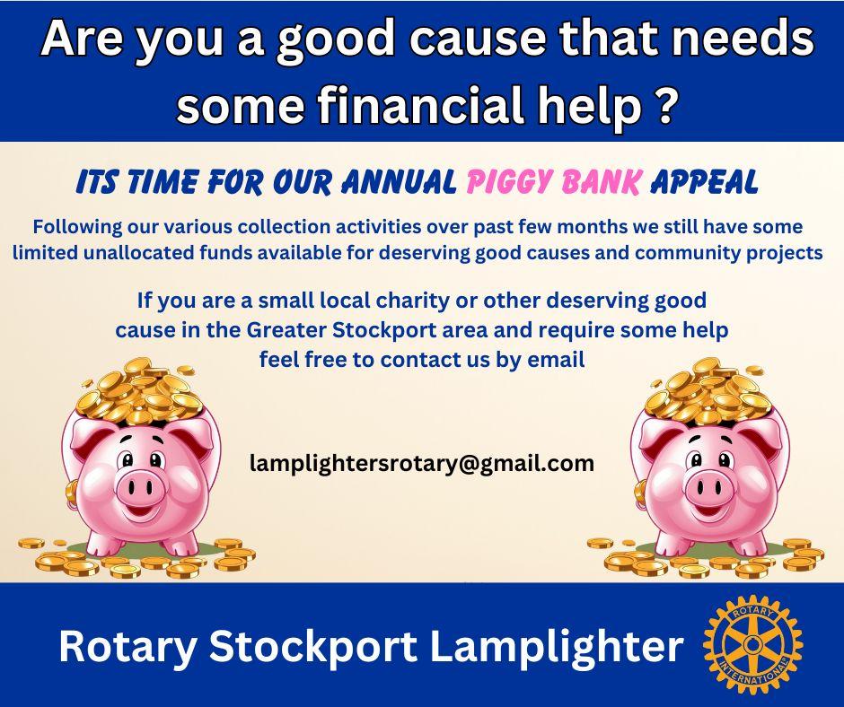 We still have some limited unallocated funds in our Piggy Bank (Charity fund) for this financial year. As in previous years we are inviting local deserving charities and good causes to apply for possible financial help from the fund.