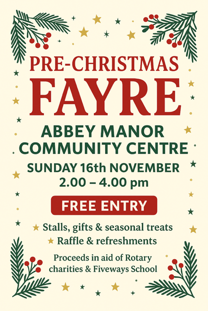 Yeovil Rotary Club Christmas Fayre at Abbey Manor Community Hall (we have a table booked). A minor fund raiser/community event.