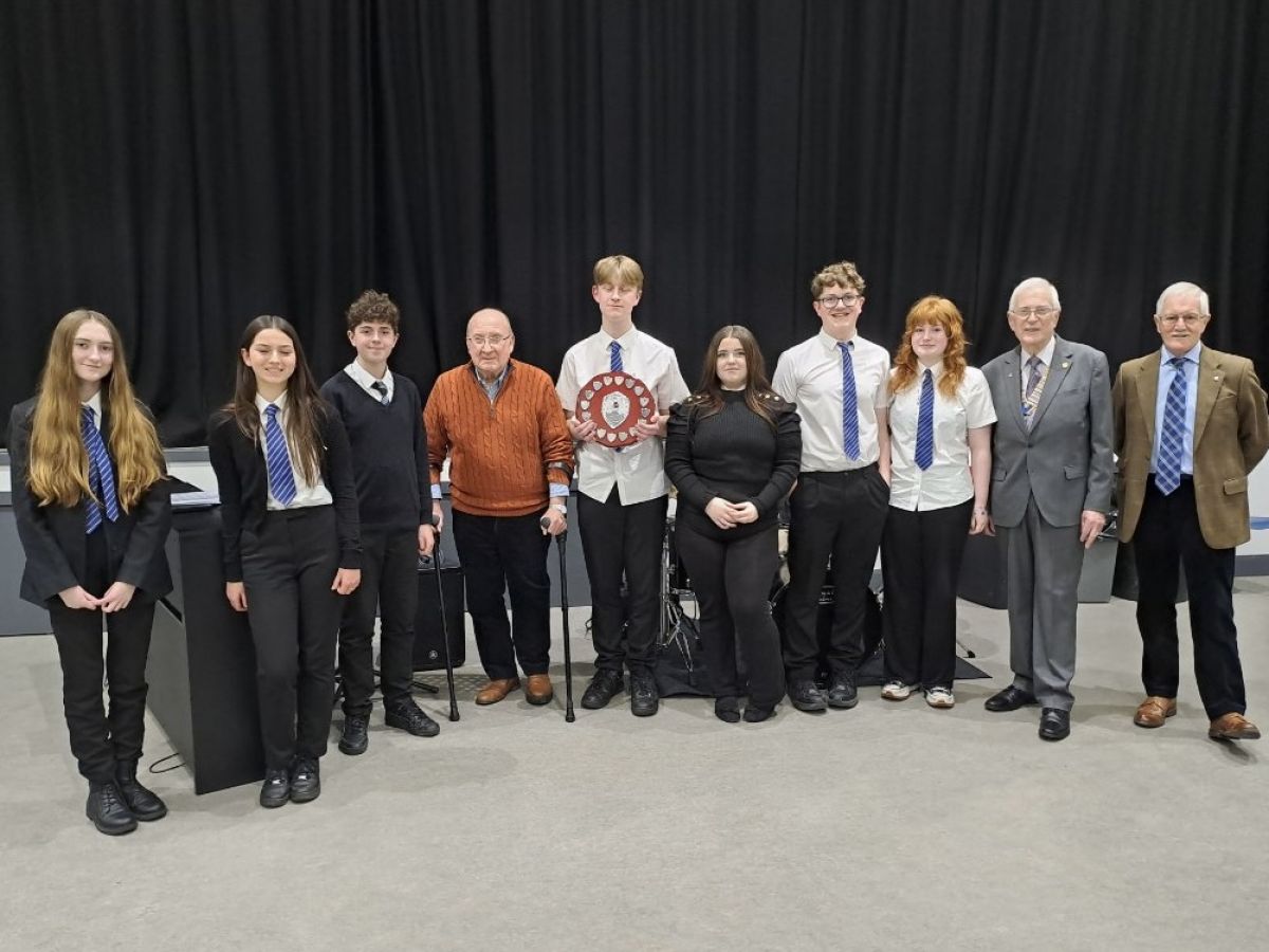 Club Youth Speaks competition 10 December 2025- Croesyceiliog School pupils with Club President