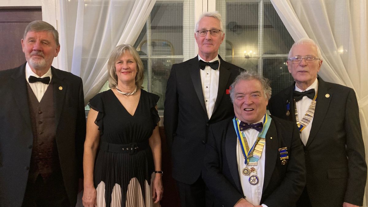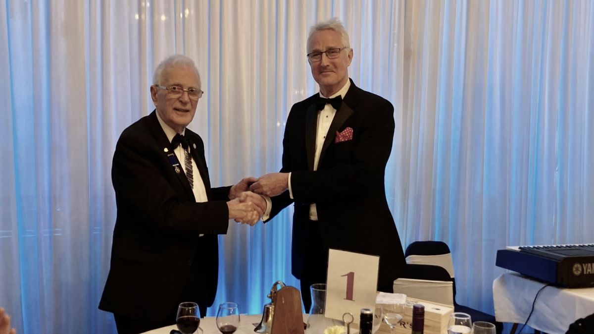 morePresident elect for the Rotary Year - Rtn Mark Hembury - being welcomed by President Stuart Telling