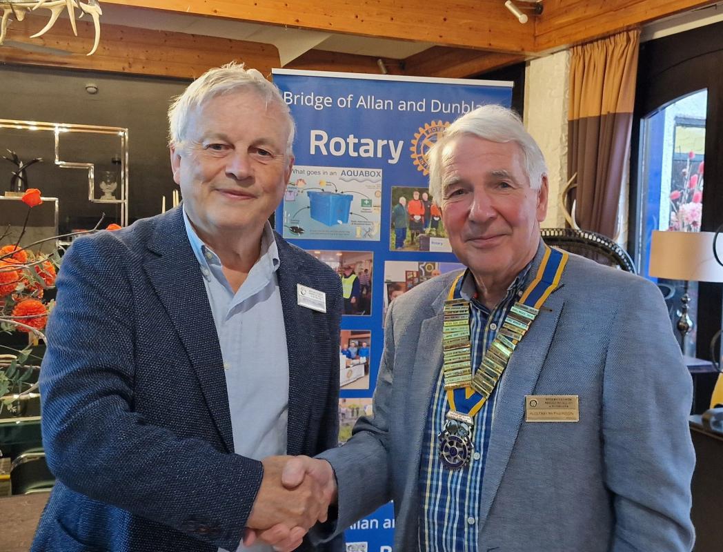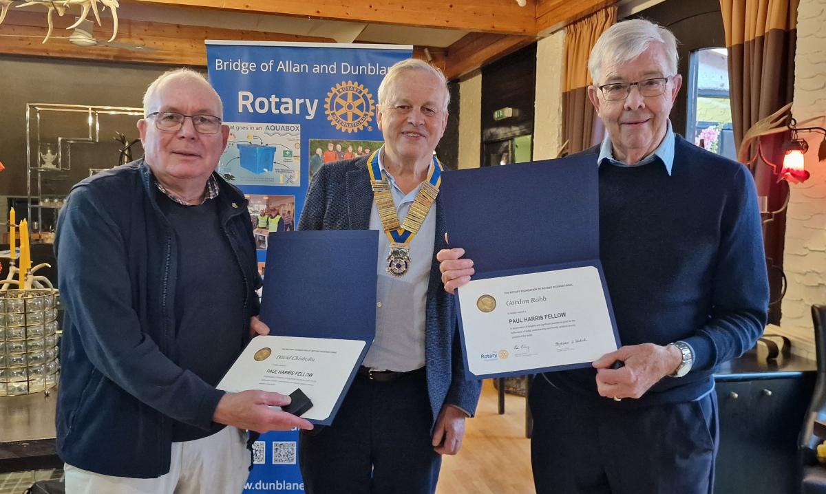 To round of his year he awarded two Members Paul Harris Fellowship on behalf of the Club for extraordinary Service to Rotary, David Chisholm and Gordon Robb were the recipients.