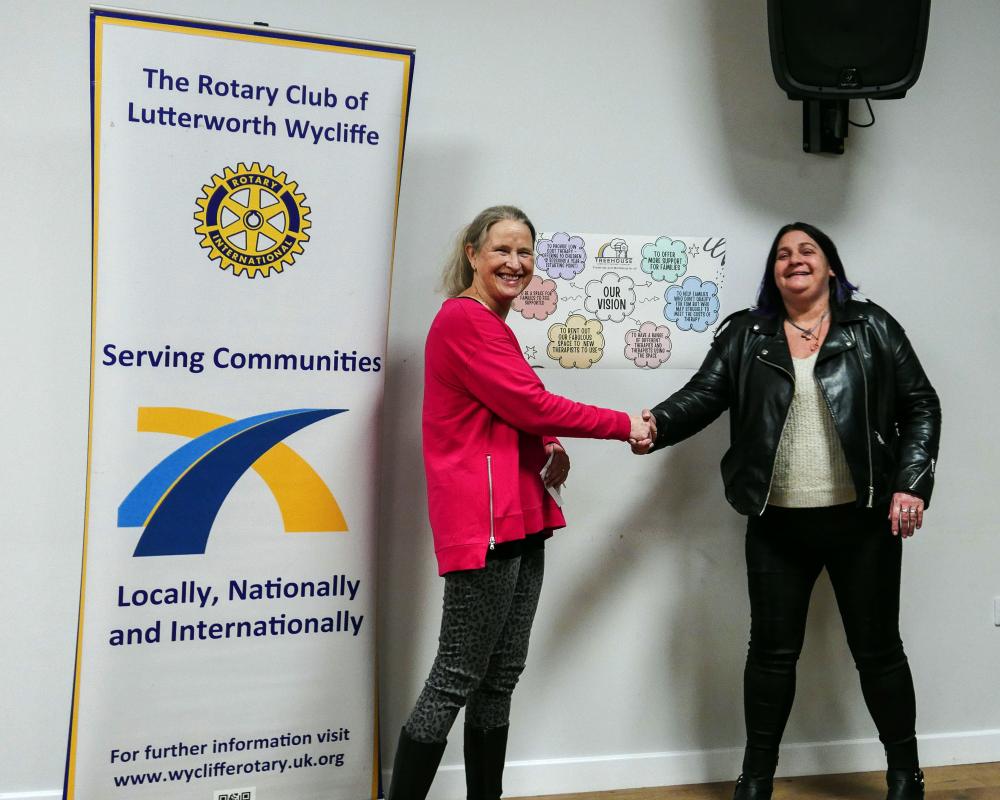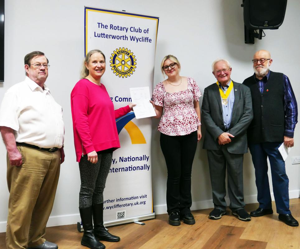 It was a busy evening at our monthly business meeting in November when we were able to present cheques to 3 local charities. The first cheque for £500 was presented to a representative of the Treehouse Wellbeing Centre to assist it with their good work in Lutterworth and the surrounding area. Treehouse is a community interest company therapy centre based in Lutterworth with an emphasis on Play Therapy and family support. The support services provided are for children, parents and carers.