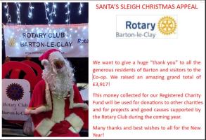 moreEach year the Club takes Santa around the streets of Barton-le-Clay to meet all the children, young and old, and make a collection to support our designated charities.