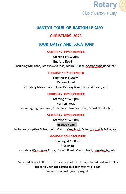 moreEach year the Club takes Santa around the streets of Barton-le-Clay to meet all the children, young and old, and make a collection to support our designated charities.