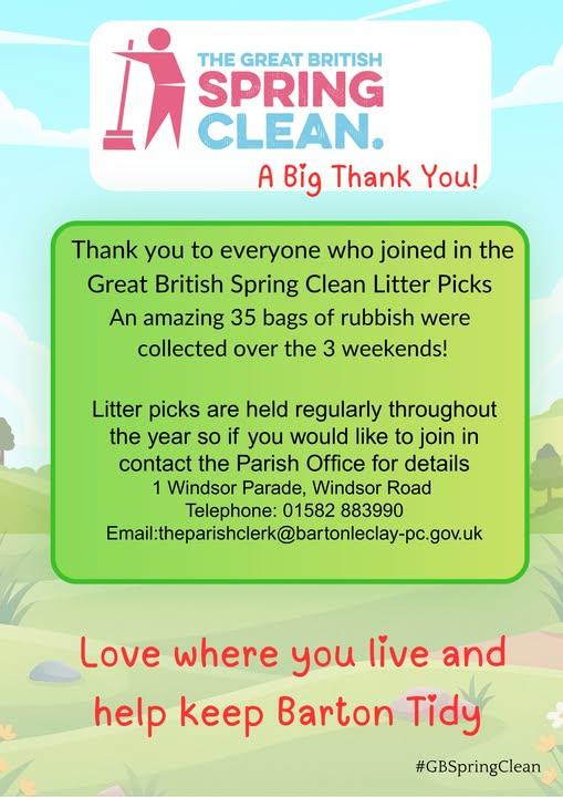 moreClub members will be litter picking in Silsoe, Campton & Barton-le-Clay. Official bags are being supplied by Central Bedfordshire Council.