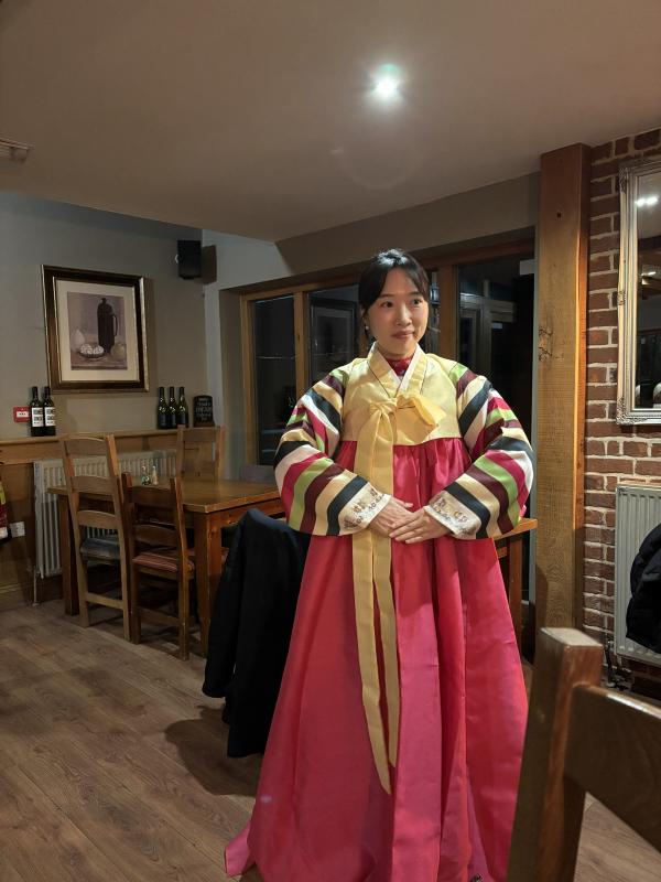 This week we celebrated Valentines Day with a super dinner at The George. We quizzed as normal, the highlight of our evening was from Bosun, our Global Scholar. She brought along and modelled her Wedding dress as with tradition of South Korea