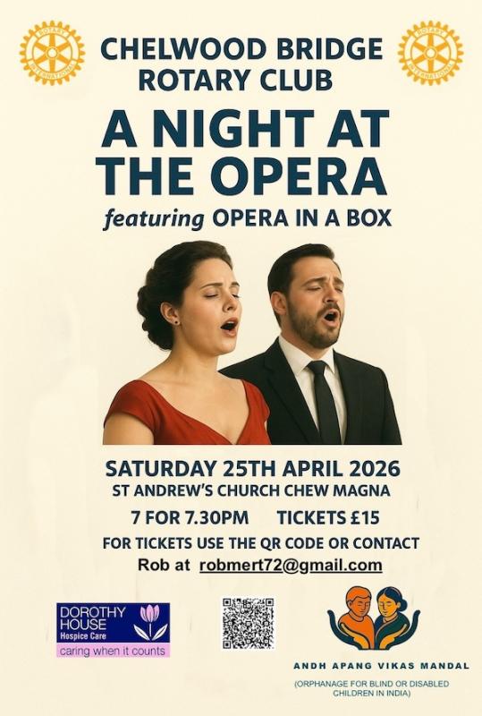 You can continue to support these vital "Jan Seva" (Service to Humanity) missions by joining us for our next Opera Gala. Get Your Tickets Today: available from The Pet Hub, Chew Magna, Pensford Post Office, Brock and Houlford, Bishop Sutton, or visit:- https://www.ticketsource.co.uk/rotary-club-of-chelwood-bridge
