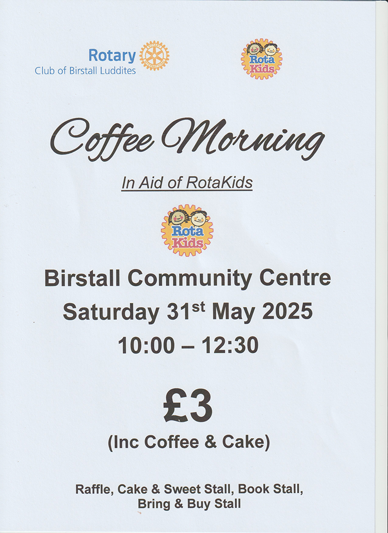 Coffee Morning in aid of RotaKids. Inc Coffee & Cake.