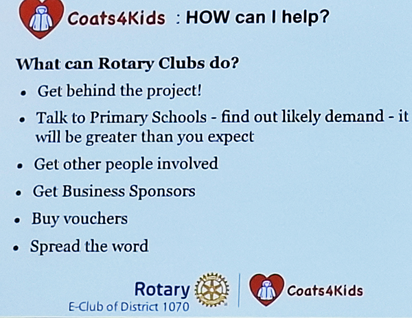 from the eClub in area 1070 for the Coats4Kids Charity.