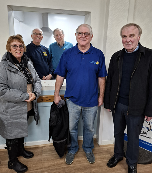 Rotarians Kathryn, Pres David, John, Paul and Bill F on right.
