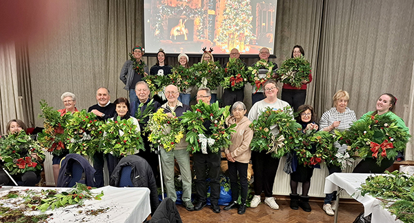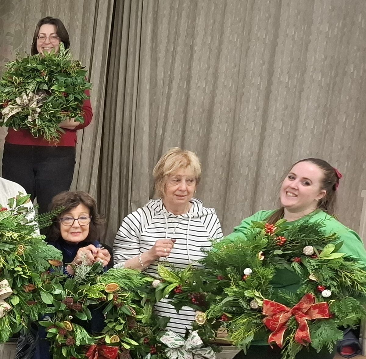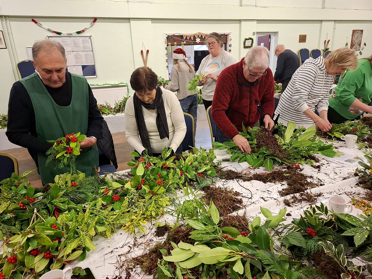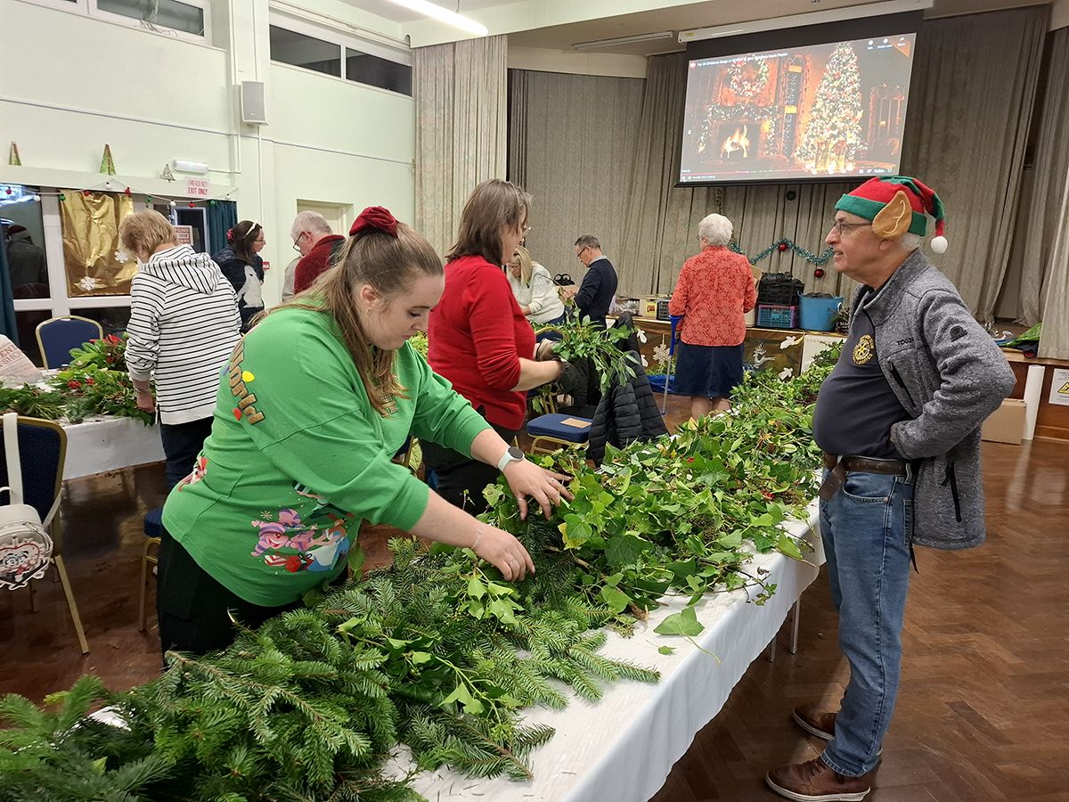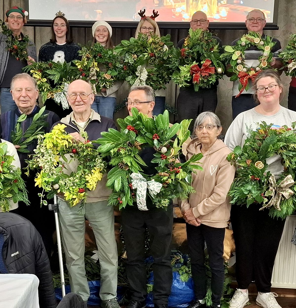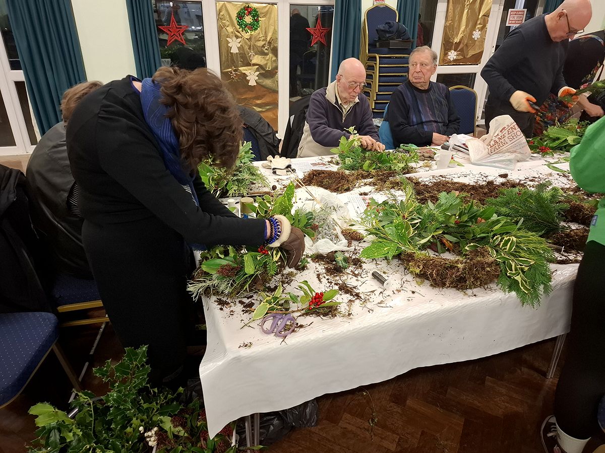 On Monday 8th Dec Luddites and friends gathered to make Christmas wreaths.Pres David and Caroline with their friends organised the event gathering greenery etc.