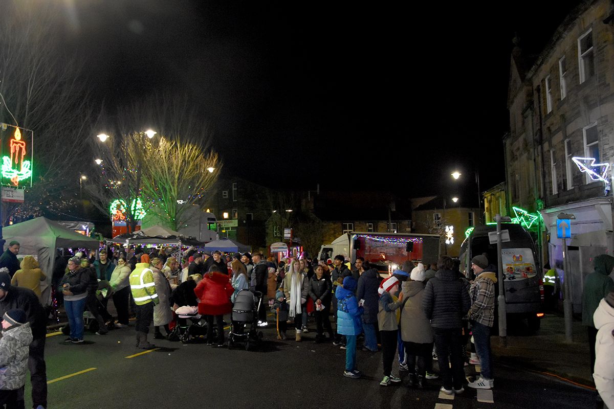 At 18:30 Santa and Kirklees Mayor Liz Smaje plus DJ special guest radio host Danny Milo switched on the Birstall lights helped by a count down from the gathered families.