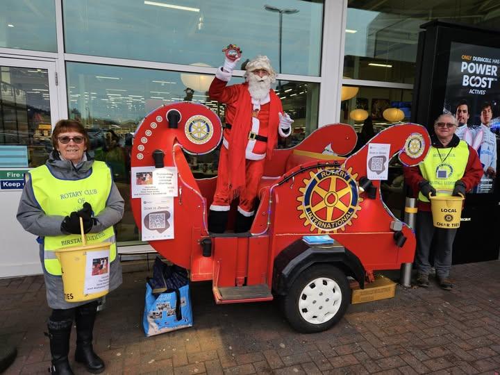 Santa and his sleigh have fund raised outside Tesco Superstore for 4 days, Thurs, Fri, Mon ,Tuesday before Christmas.
