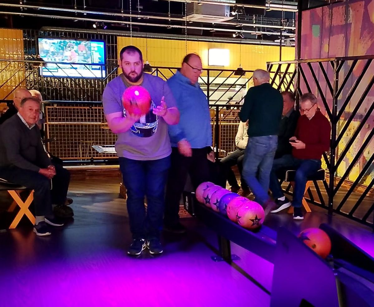 Luddites and friends gatherd at the White Rose 10 pin bowling venue 10 Pin.