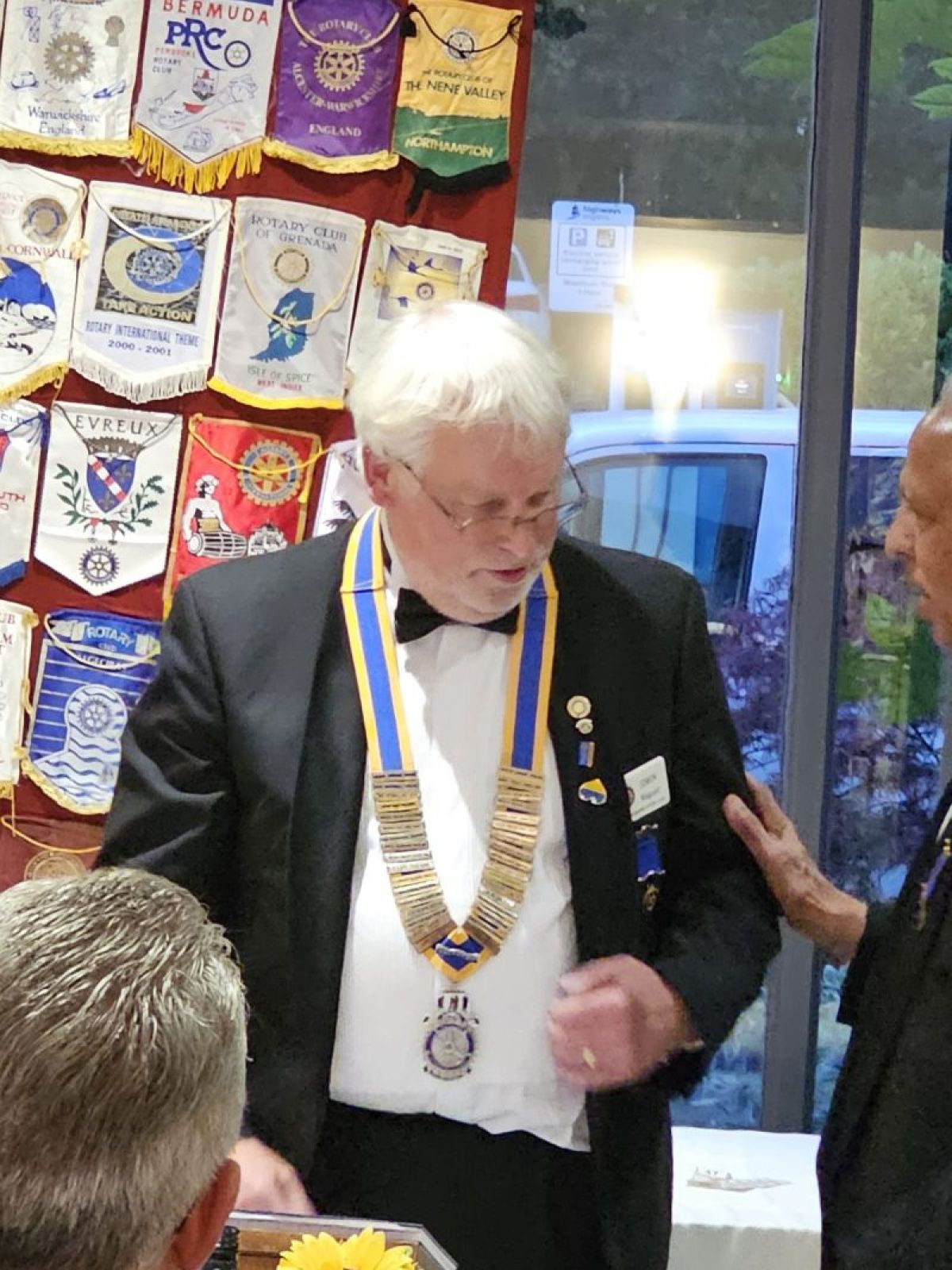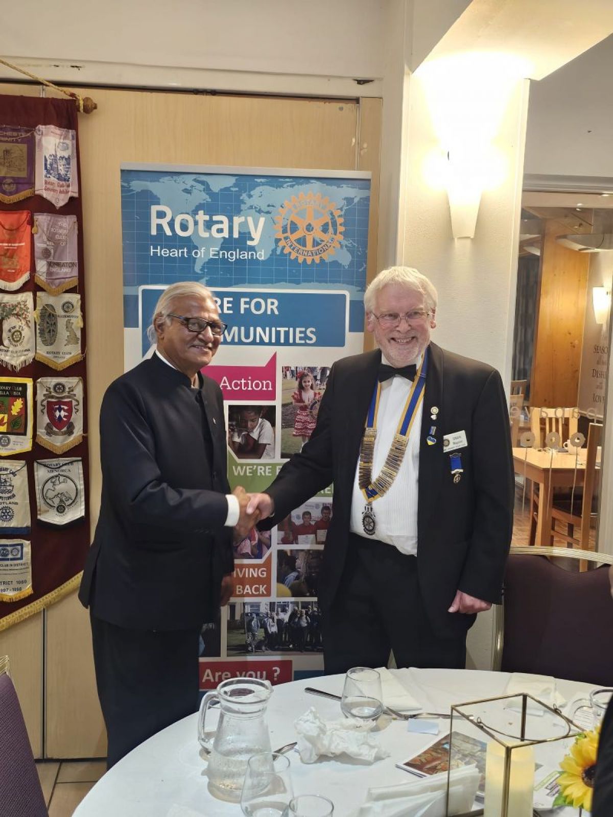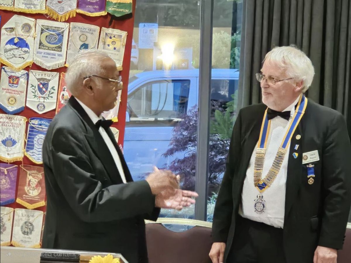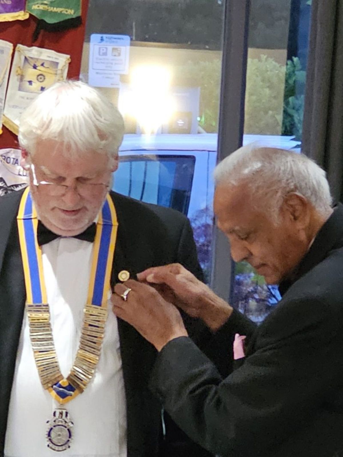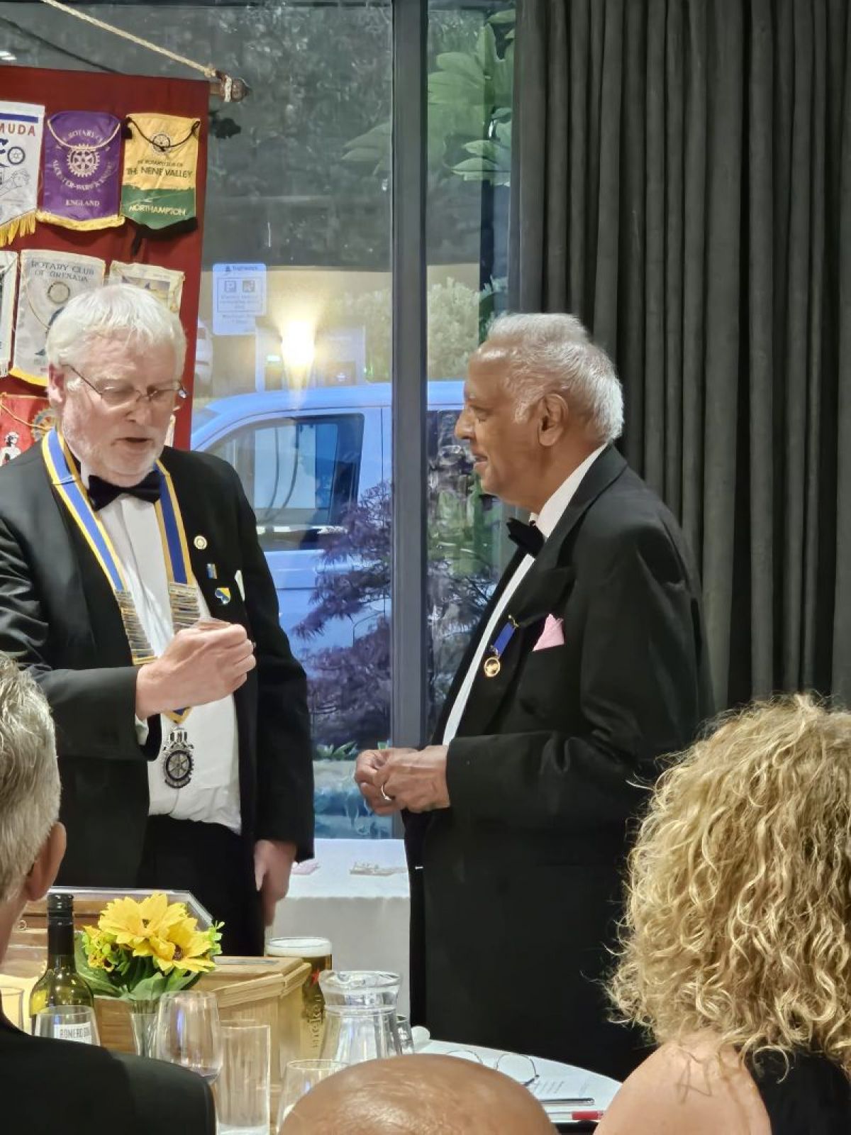 Past president Ramesh Srivastava handing over to President elect Simon Maguire.