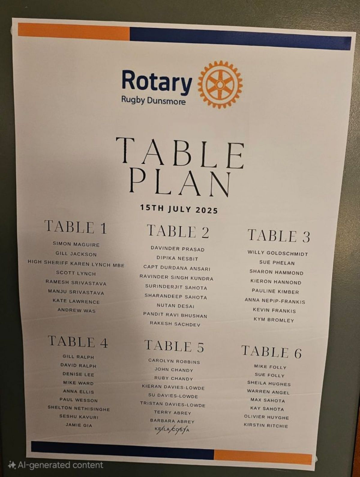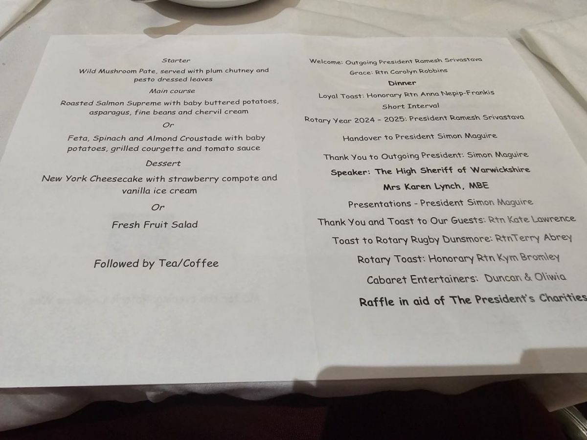 This dinner is to look back and celebrate the fundraising and events that we organised or attended which raised £4500 for President Ramesh's charity of the year Myton Hospice.