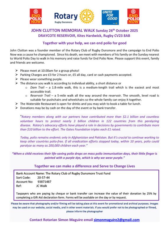John Clutton Memorial Walk in aid of End Polio Now - Rotary Rugby Dunsmore