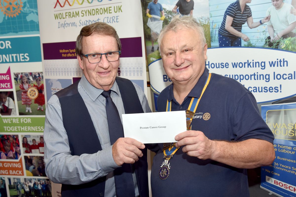 This year the proceeds from the Bank Holiday Golf weekend were distributed to 20 local charities and good causes and, in addition, the £5000 raised at the Auction Night was presented to Paul Markall representing the local branch of the Worcestershire Prostate Cancer Support Group.