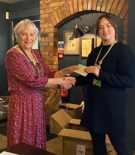 Thursday 23 October 2025 President Gail presents Lucy Huitson witha cheque for £1100 in support of the Ruchcliffe Christmas Toy appeal, who have supported 600 families in the last 5 years with up to 3 presents per household