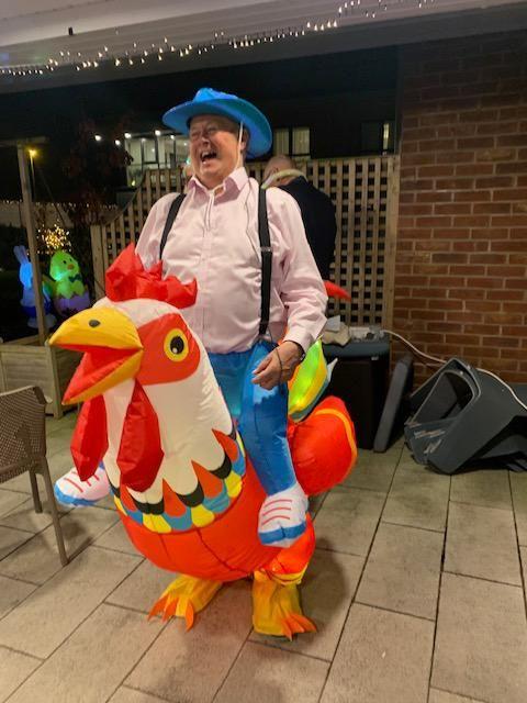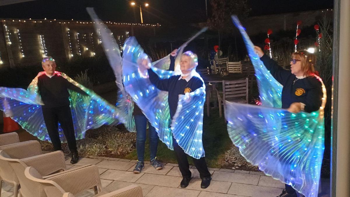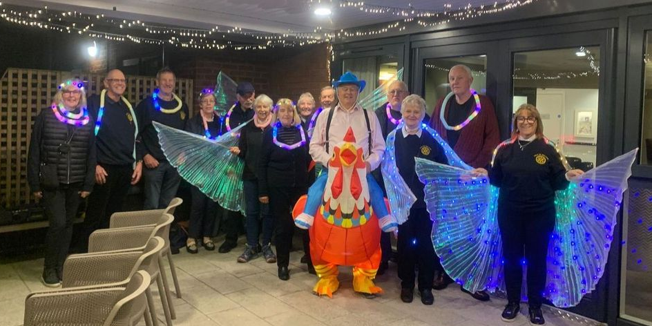 A great evening of community support and fun. Rob was organising, Alan F and Chris S were collecting details and Money, President Gail and the “girls” were all dancing and prancing with their light cloaks and flashing headgear, Chris N and Allen were entertaining the children and parents with their ‘spin the wheel’ competition and Gordon was clucking and laughing with his “chicken costume”. Louise briefed us all and showed us around, they fed us and drinks provided with a final ‘gift Box’.