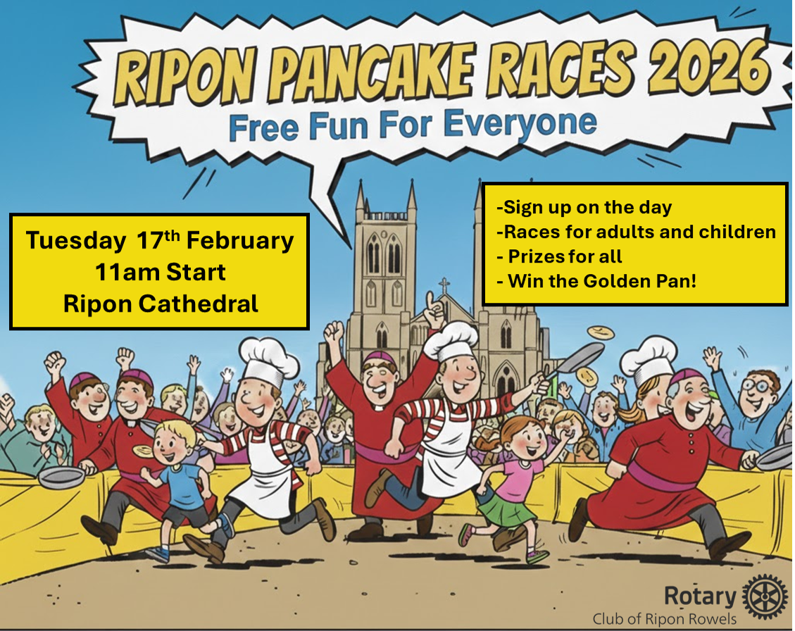 The Rotary club of Ripon Rowels are proud to support this centuries old tradition, which combines marking the beginning of Lent with having a lot of competitive fun flipping pancakes, and, of course, eating them, along the cobbled streets of Ripon. Prizes and certificates for the participants are an added incentive to get involved.