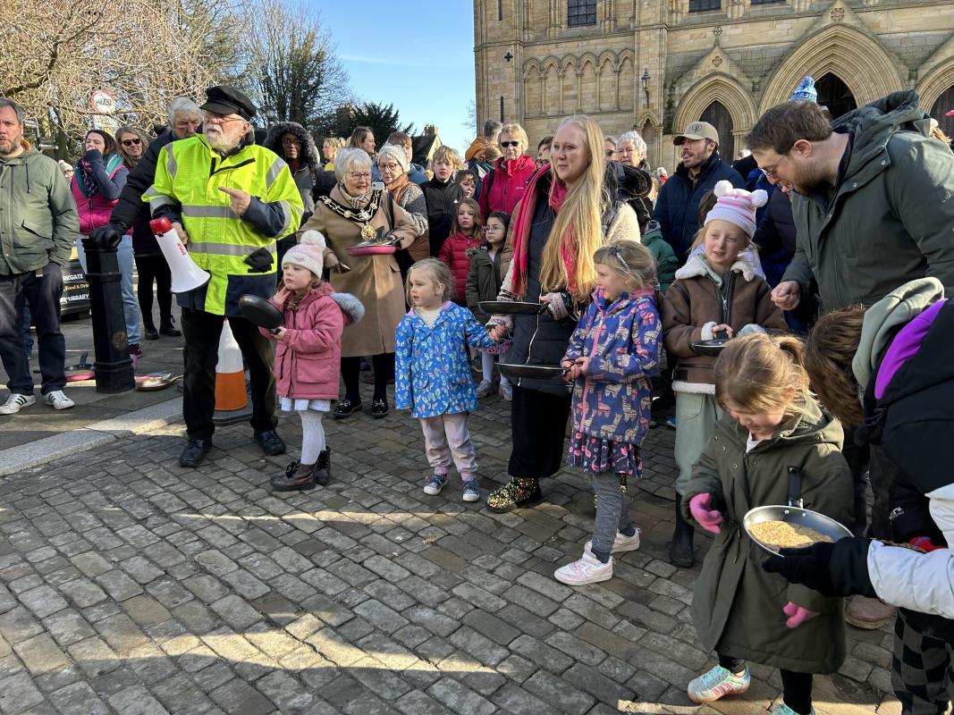 As the Lenten bell rings out at Ripon Cathedral at 11am on Shrove Tuesday each year, let the Pancake Races begin!