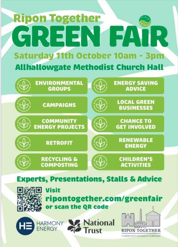 We are delighted to be helping out at the Ripon Together Green Fair this year. Looking forward to some interesting talks and discussions about initiatives in our local area.