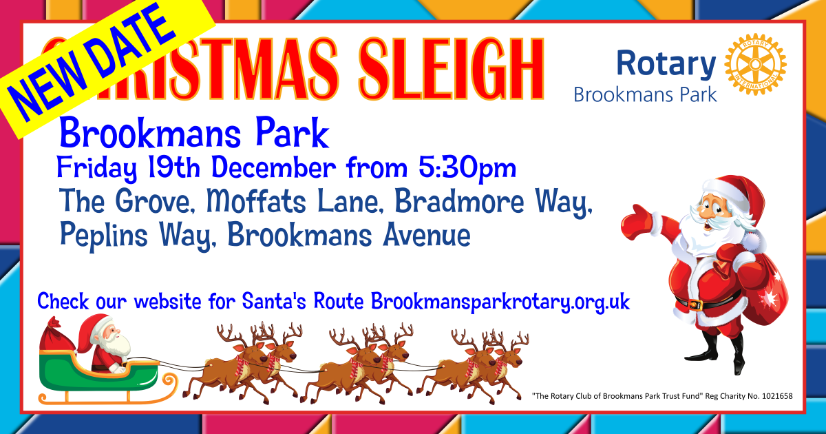 We will be out and about with our Sleigh in December raising funds for Crisis at Christmas and other charities supported by Brookmans Park Rotary.