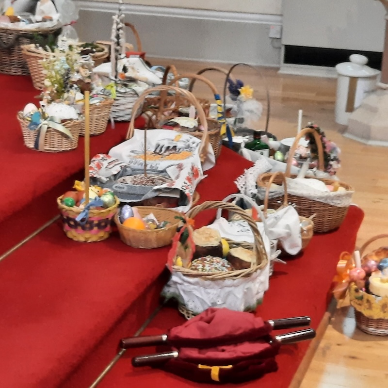 Pictures below taken by Philip Dearden at St Hugh's RC church when our Ukrainian friends were making Easter Baskets and then filling them with Ham & Cheese for Easter Monday breakfast