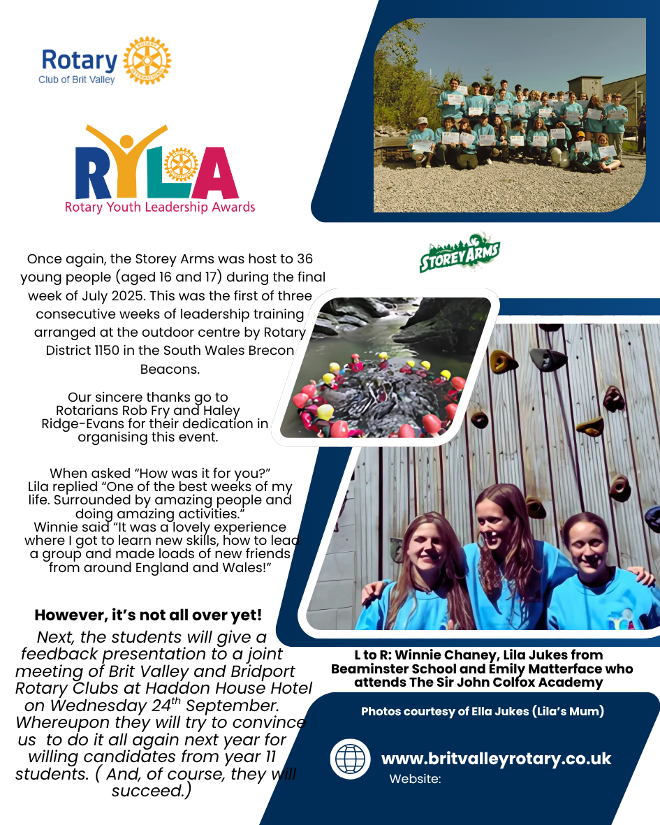 more Following interviews at Beaminster School as well as home visits to parents, Brit Valley Rotary club are pleased to announce;