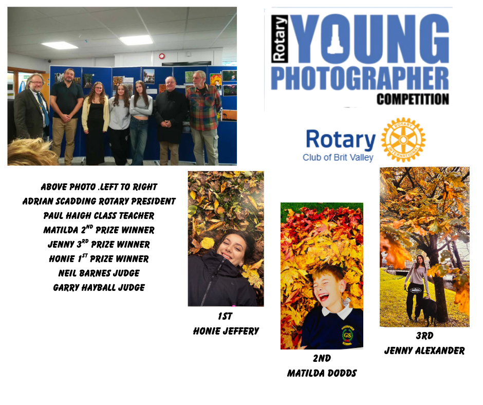 Elaine McMahon of Brit Valley Rotary, who led this project, was proud to host one of the first rounds of the Young Photographer competition in partnership with students from Beaminster School. The event brought together an impressive selection of creative and thoughtful photographic work, showcasing the talent and enthusiasm of the young participants.